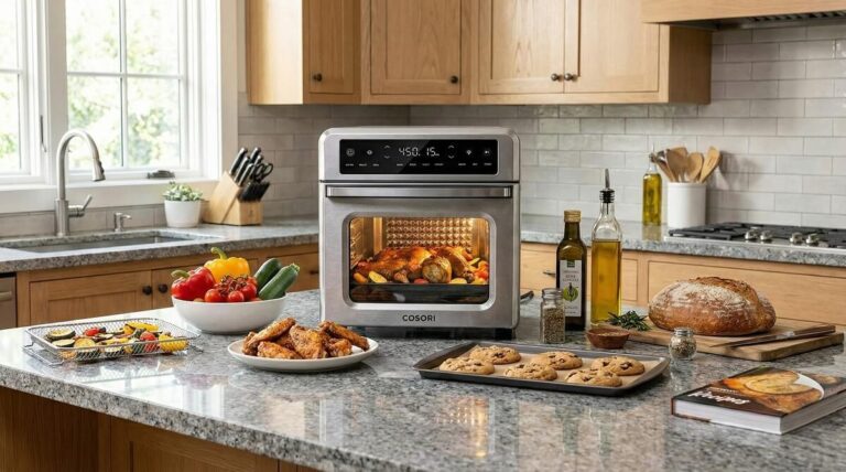 After analyzing 60+ verified owner reviews and researching this countertop air fryer oven extensively, the Cosori 11-in-1…